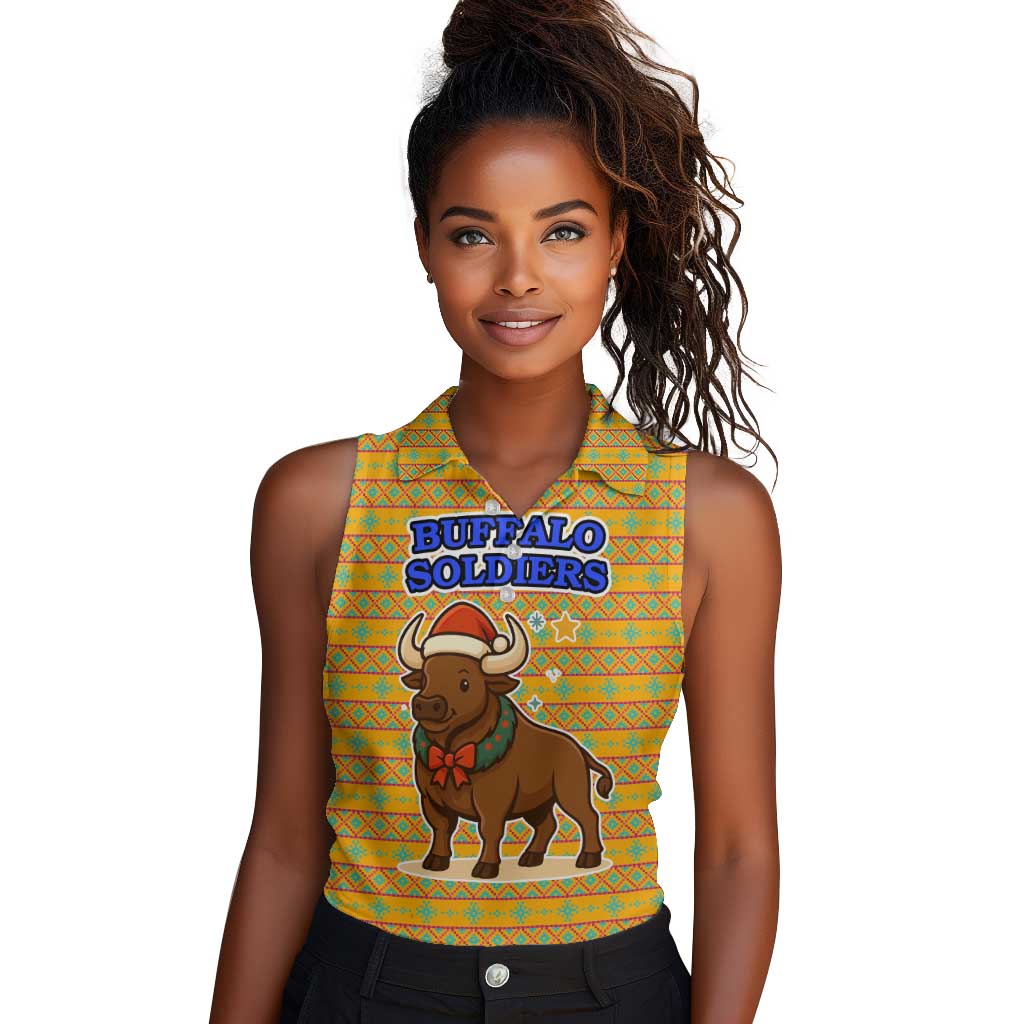 Buffalo Soldiers Christmas Women Sleeveless Polo Shirt Yellow Cartoon Buffalo Santa Hat Design