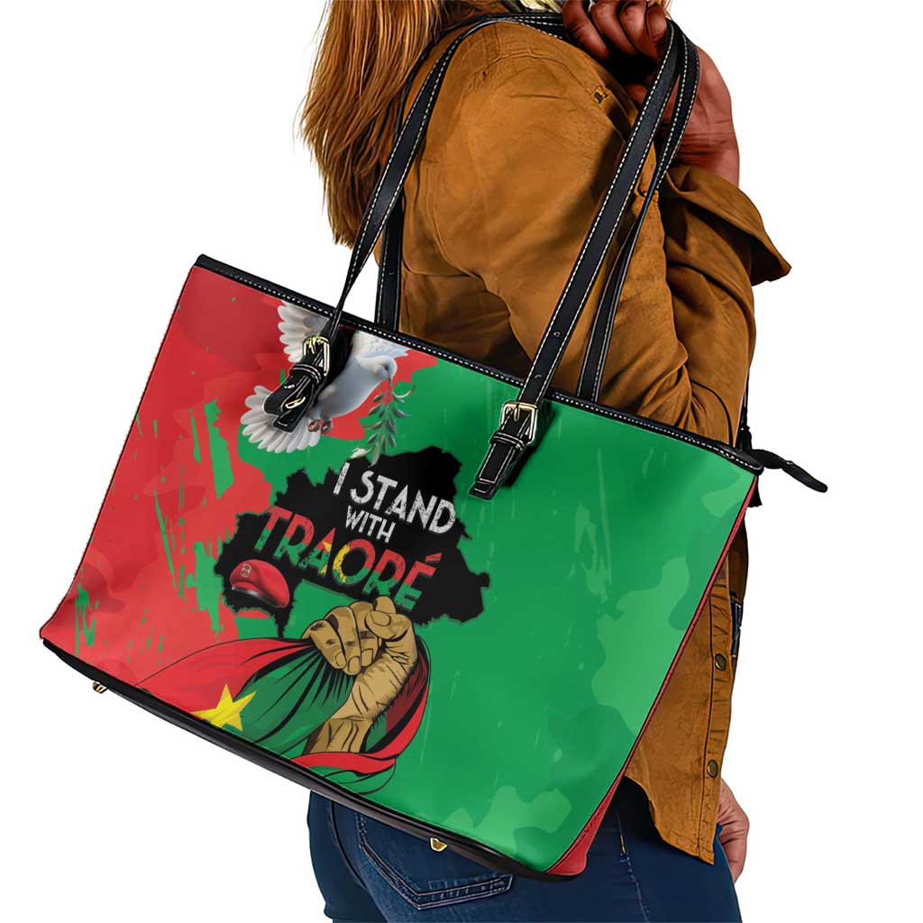 Burkina Faso I Stand With Traore Leather Tote Bag