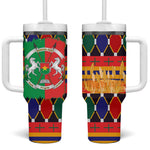 Burkina Faso Tumbler With Handle Kente Flag Red Green Blue Geometric