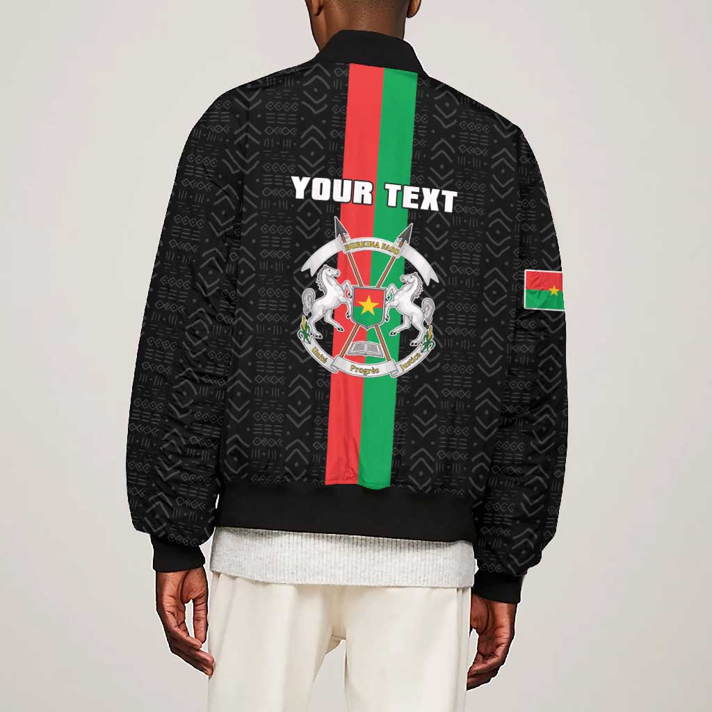 Personalized Burkina Faso Bomber Jacket Striped Black - Bogolan Pattern