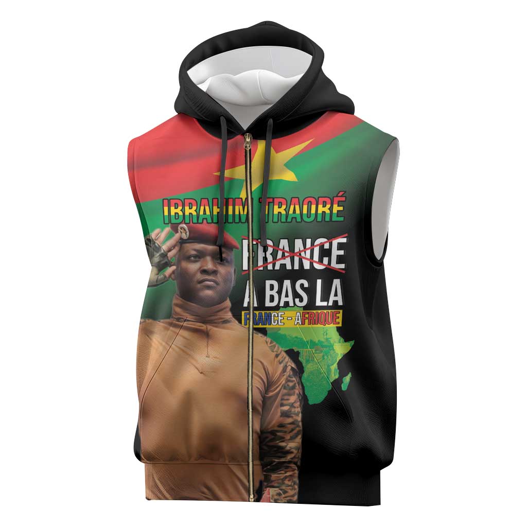 Traore Burkina Faso A Bas La Francafrique Sleeveless Zip Hoodie