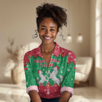 Christmas Burkina Faso Women Casual Shirt Snowflake Horses and Coat of Arms TS04