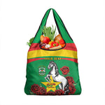 Personalized Burkina Faso Grocery Bag White Stallion With Red Rose - Republic Day