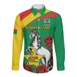Personalized Burkina Faso Long Sleeve Button Shirt White Stallion With Red Rose - Republic Day