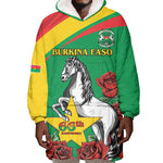 Personalized Burkina Faso Wearable Blanket Hoodie White Stallion With Red Rose - Republic Day