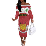 Personalized Burundi Off The Shoulder Long Sleeve Dress Coat Of Arms African Pattern