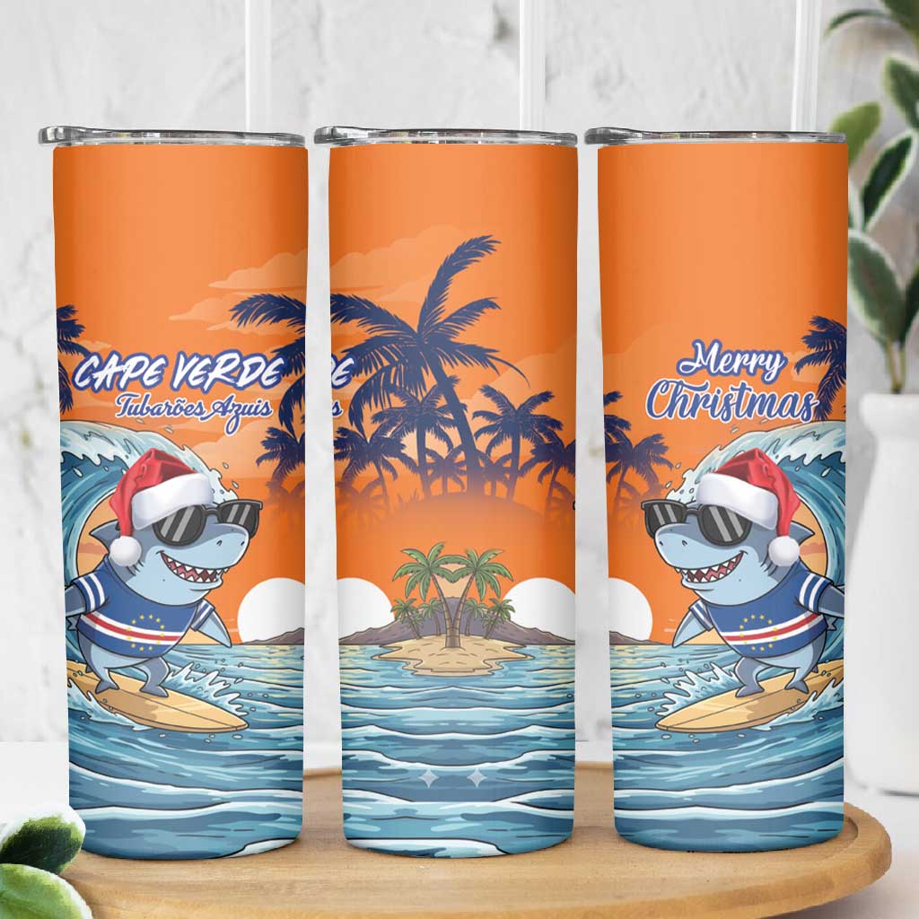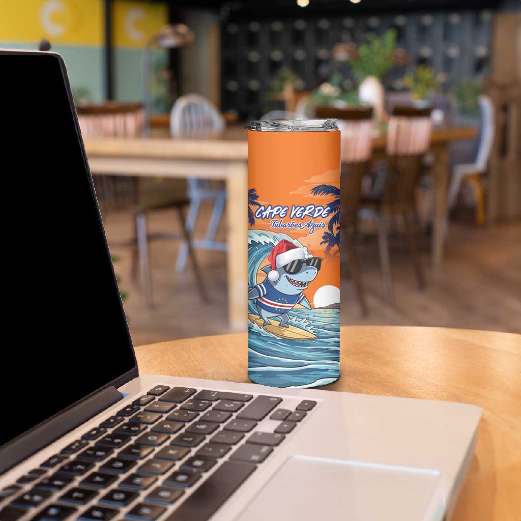 Christmas Cape Verde Skinny Tumbler Funny Shark Surfing LT18