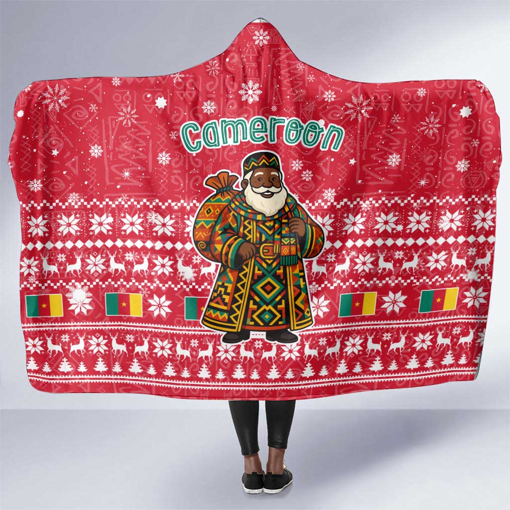 Cameroon Christmas Hooded Blanket Snowflake Pattern Traditional Santa and Map Motif