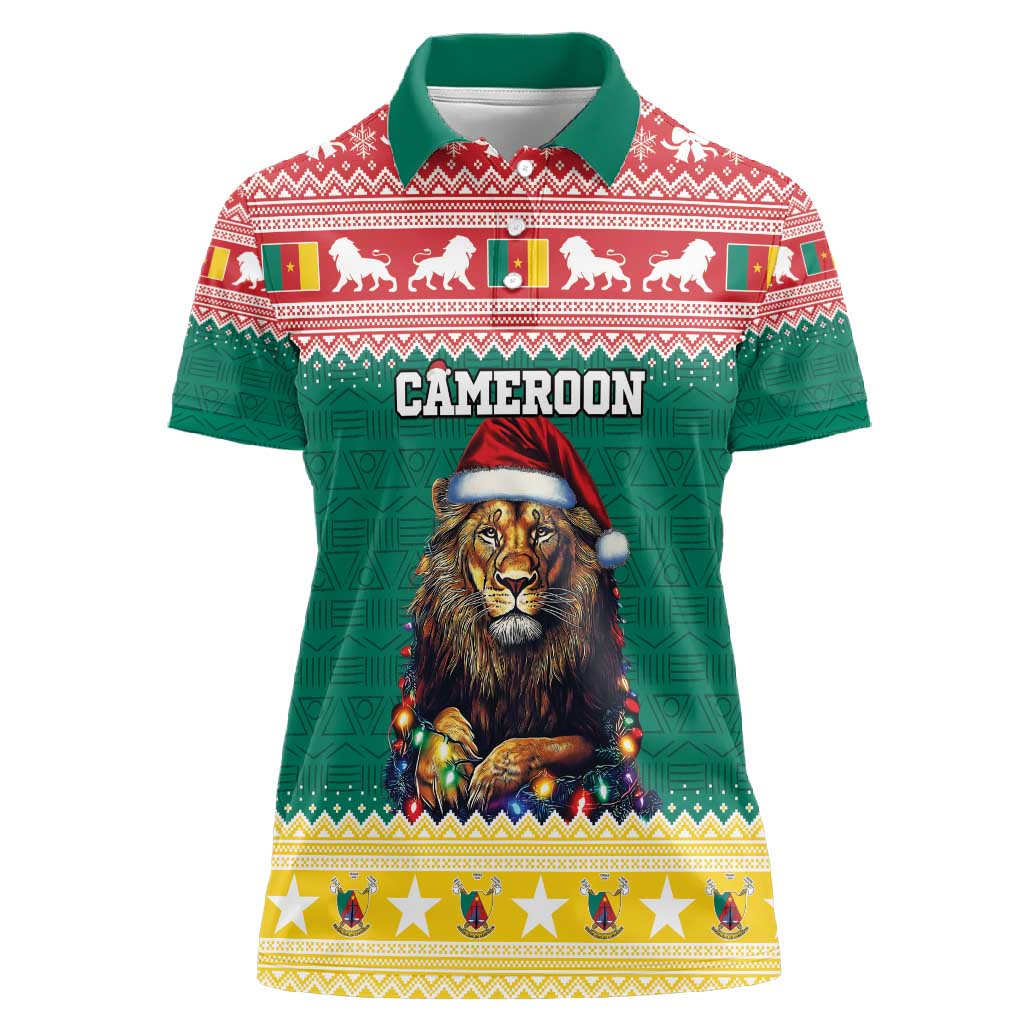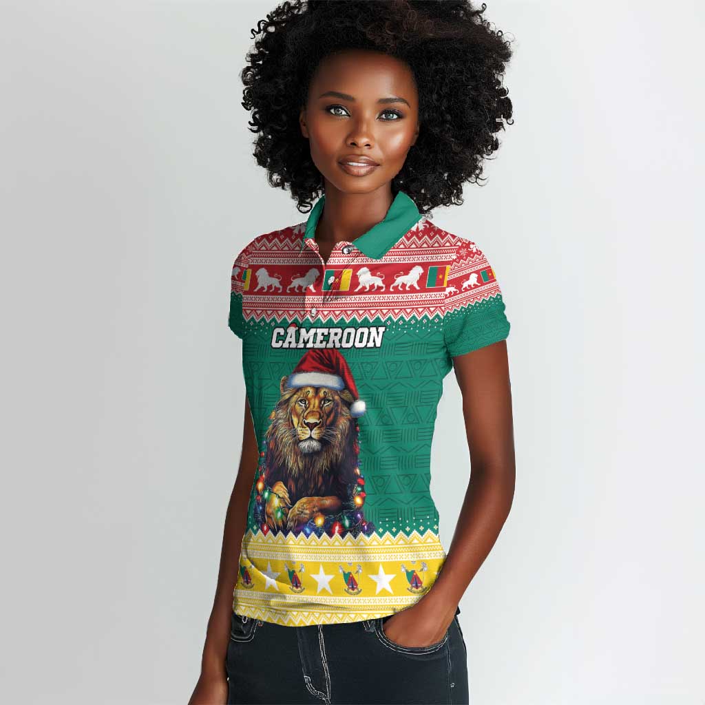 Cameroon Christmas Women Polo Shirt Lion African Santa