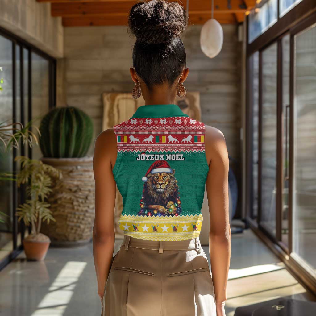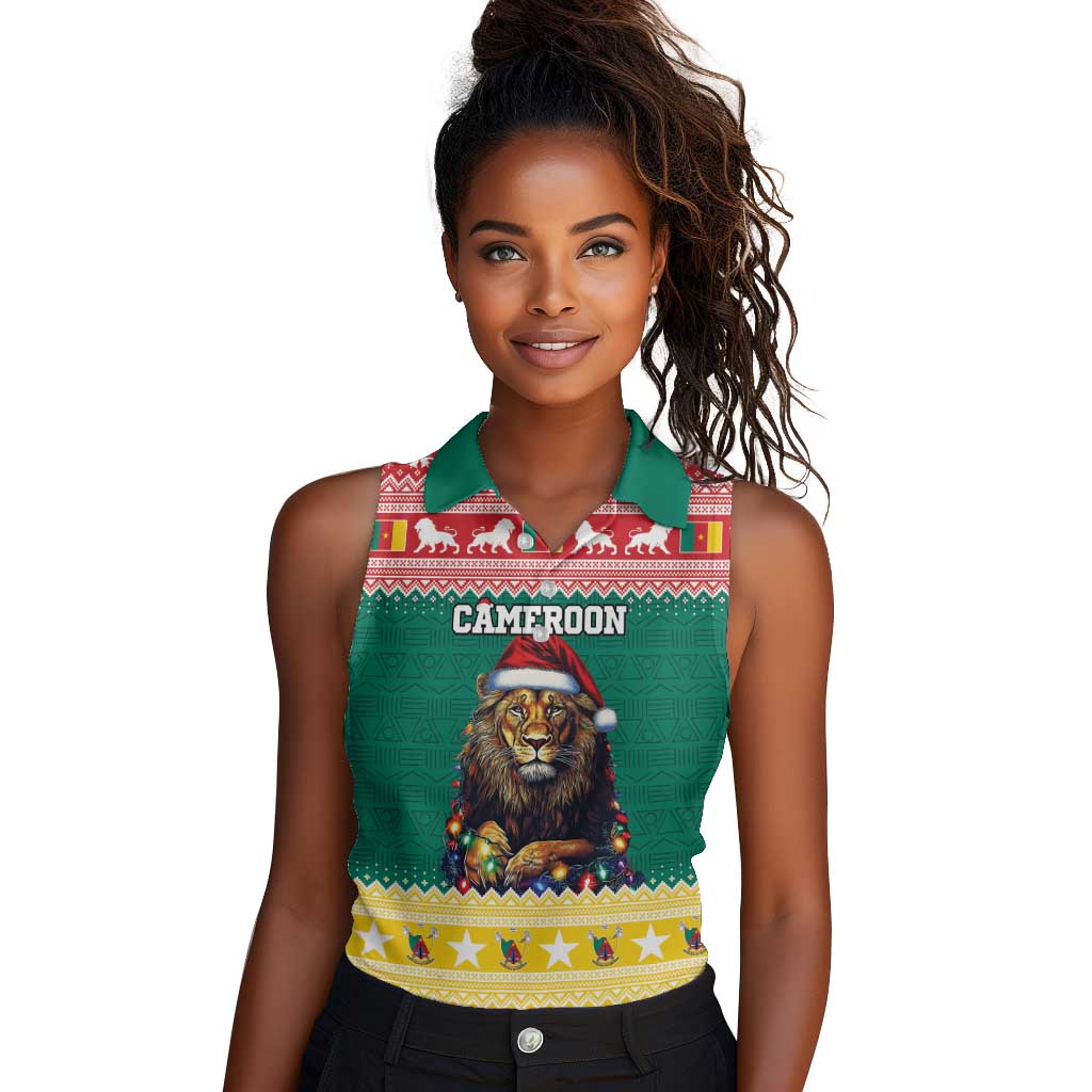 Cameroon Christmas Women Sleeveless Polo Shirt Lion African Santa