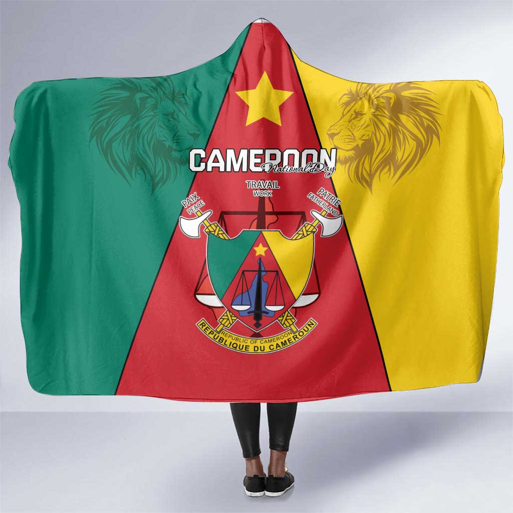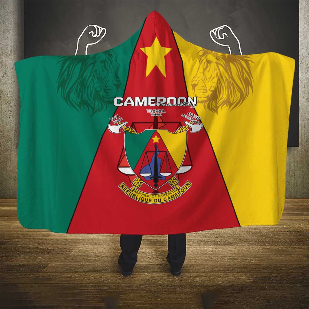 Cameroon National Day Hooded Blanket Lion Mix Coat Of Arms Style