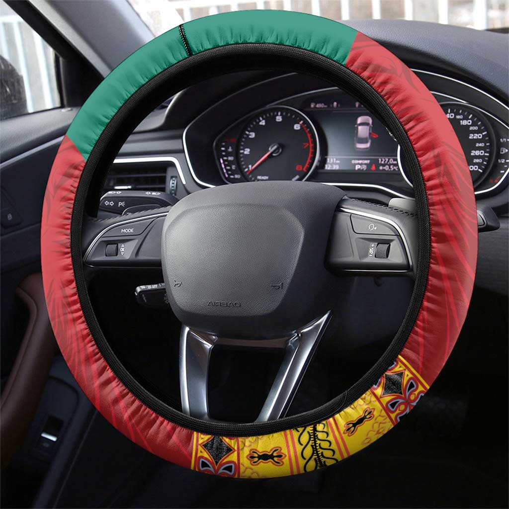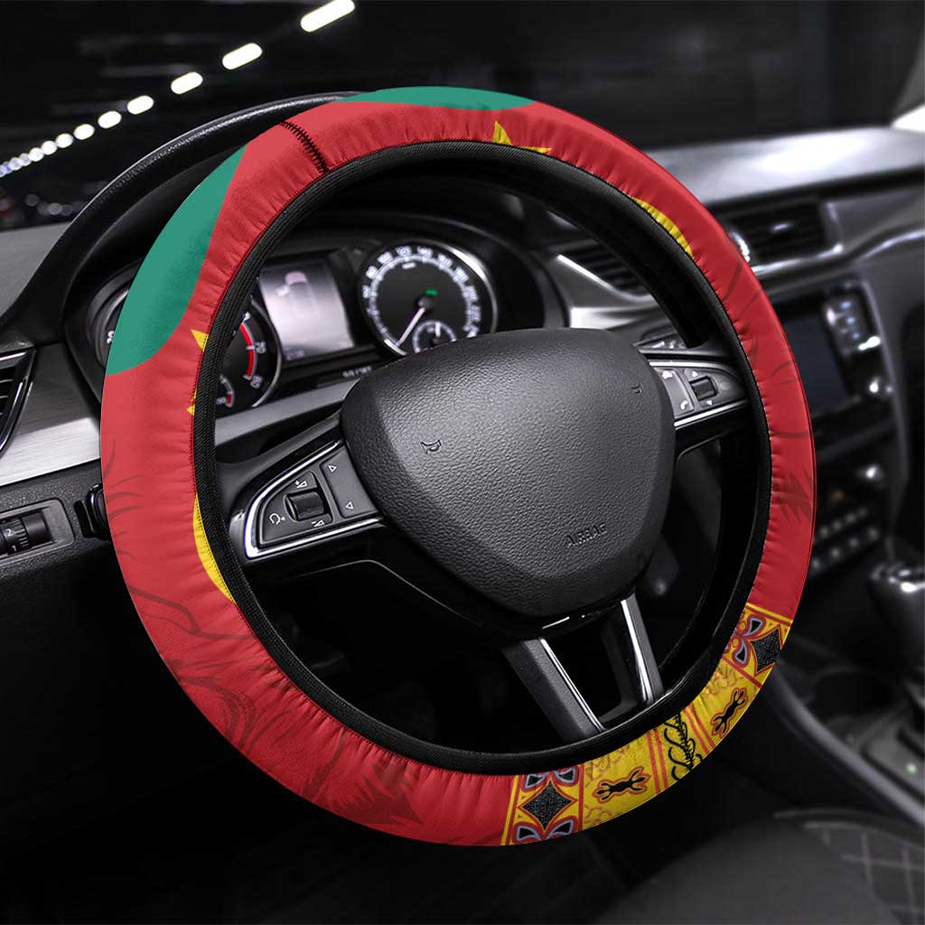 Cameroon National Day Steering Wheel Cover Cameroun Coat Of Arms With Atoghu Pattern