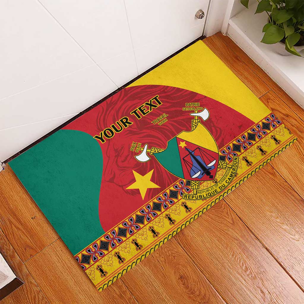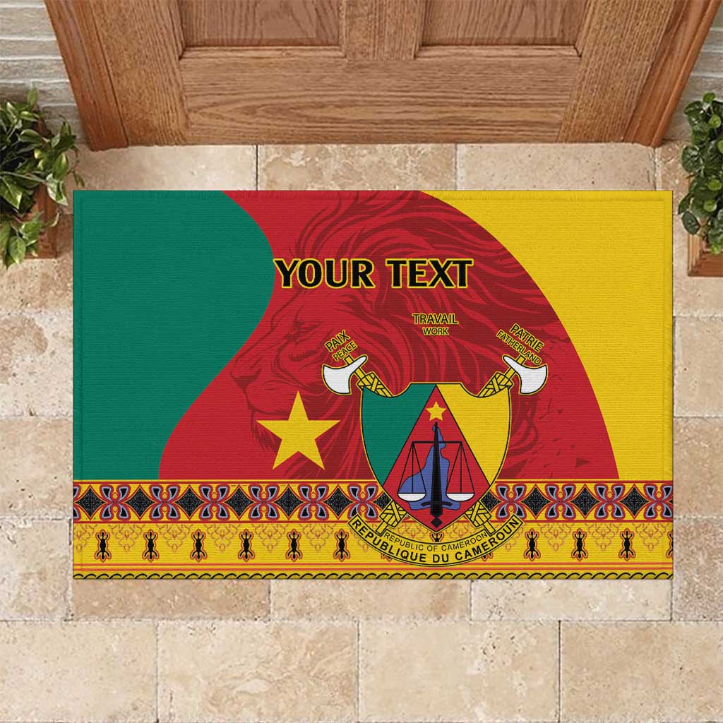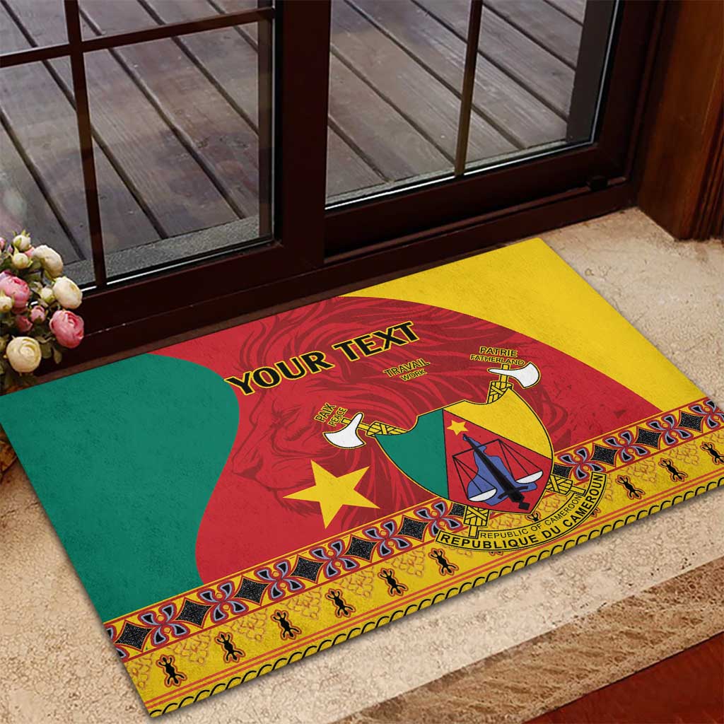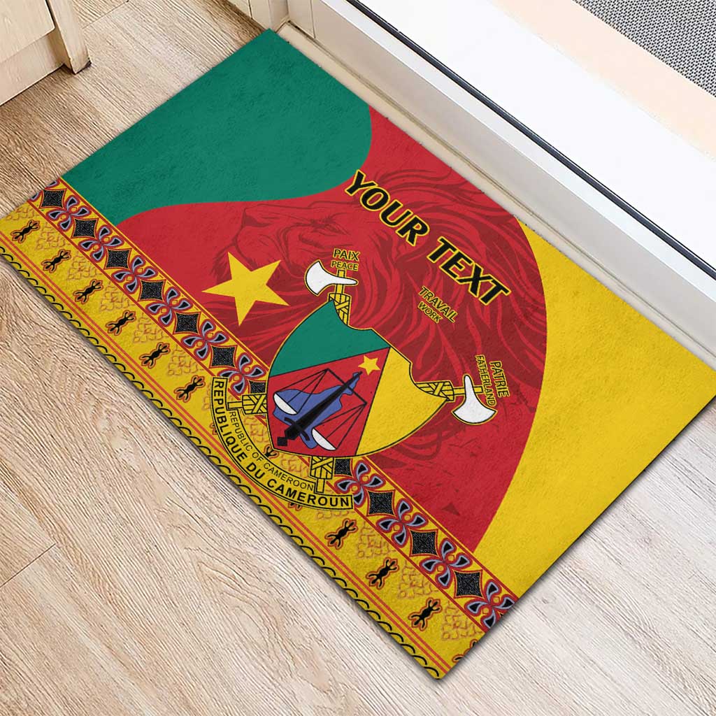 Personalised Cameroon National Day Rubber Doormat Cameroun Coat Of Arms With Atoghu Pattern