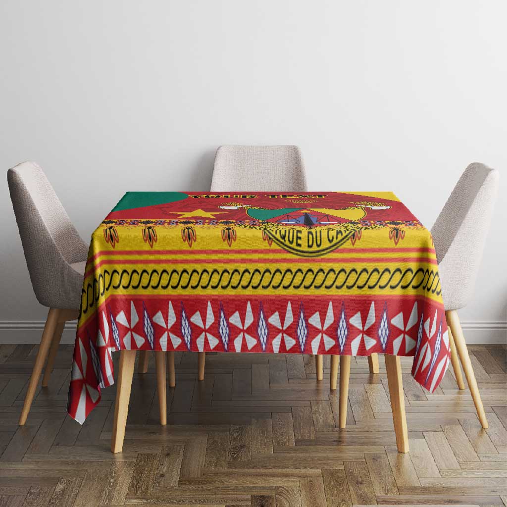 Personalised Cameroon National Day Tablecloth Cameroun Coat Of Arms With Atoghu Pattern