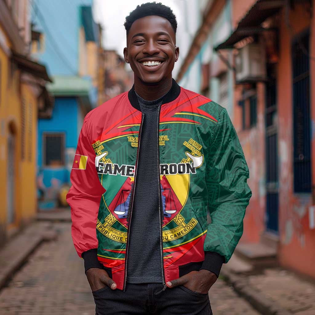 Personalized Cameroon Bomber Jacket with Cameroun Coat of Arms and African Pattern