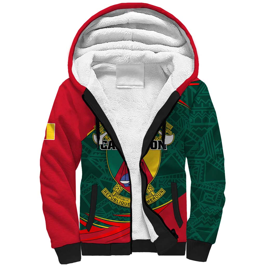 Personalized Cameroon Sherpa Hoodie with Cameroun Coat of Arms and African Pattern