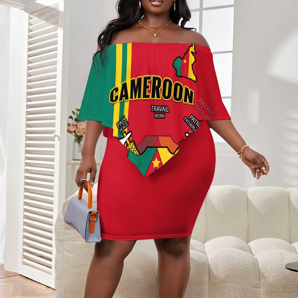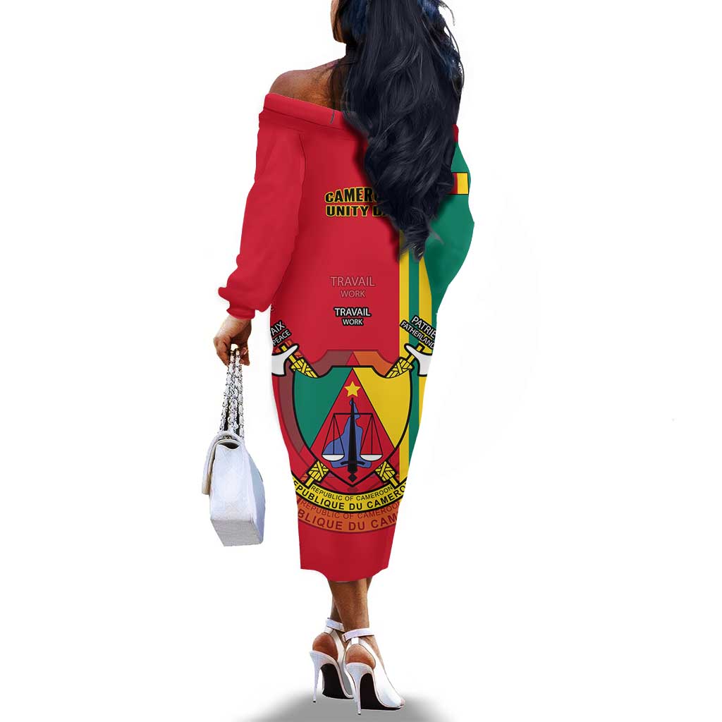 Cameroon Happy Unity Day Cameroun Coat Of Arms Off The Shoulder Long Sleeve Dress