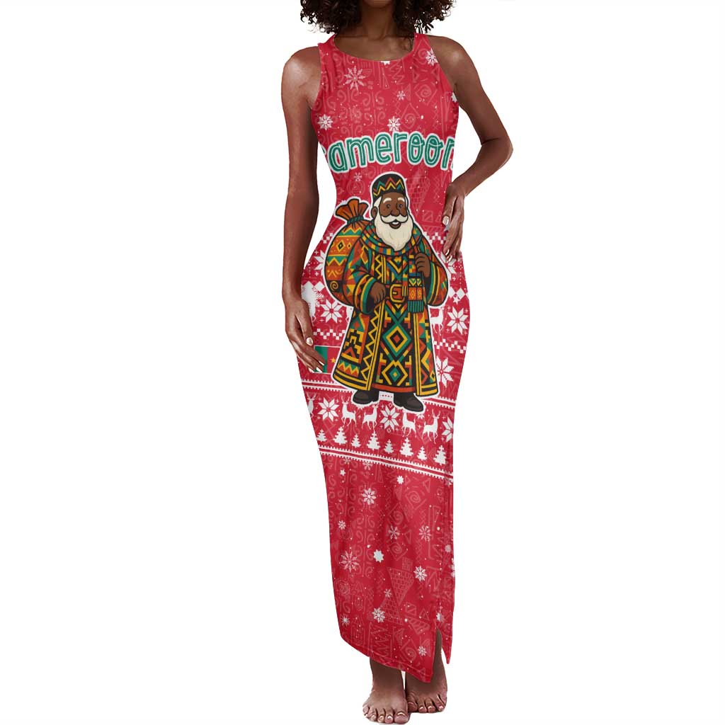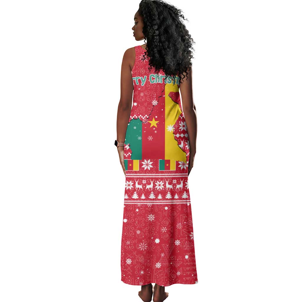 Cameroon Christmas Tank Maxi Dress Snowflake Pattern Traditional Santa and Map Motif TS04