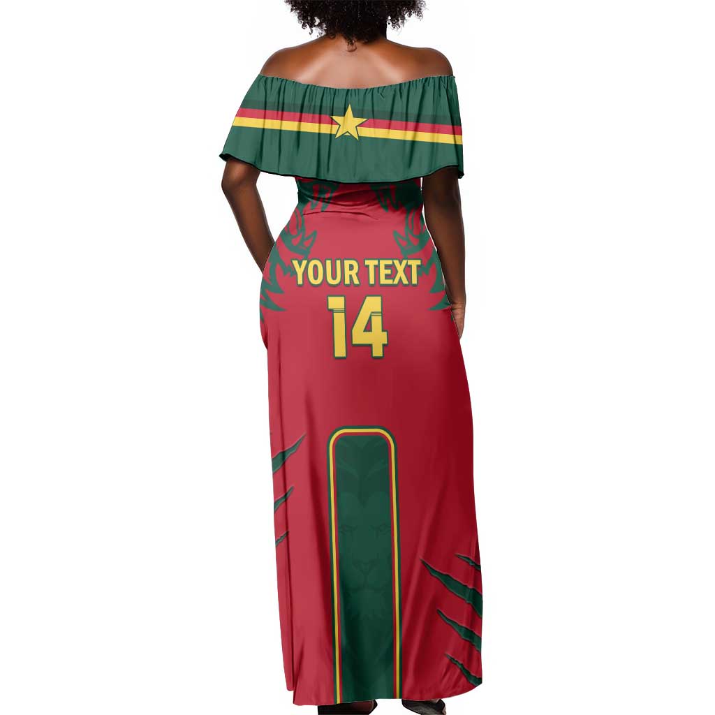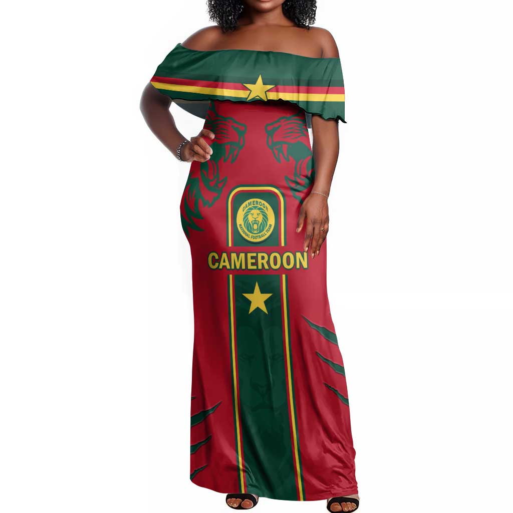 Custom Cameroon Football Off Shoulder Maxi Dress 2024 African Nations Go Champions Lion Style