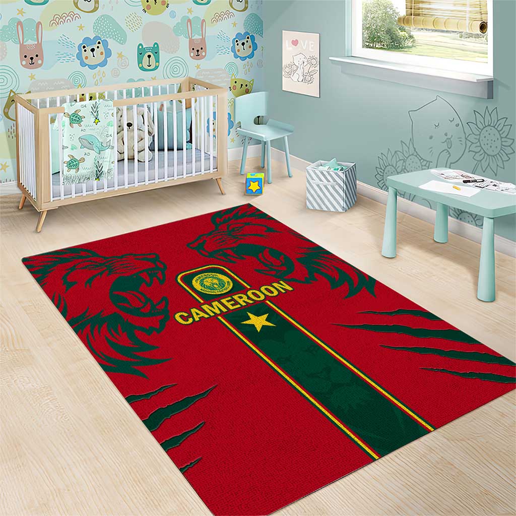 Cameroon Football Area Rug 2024 African Nations Go Champions Lion Style