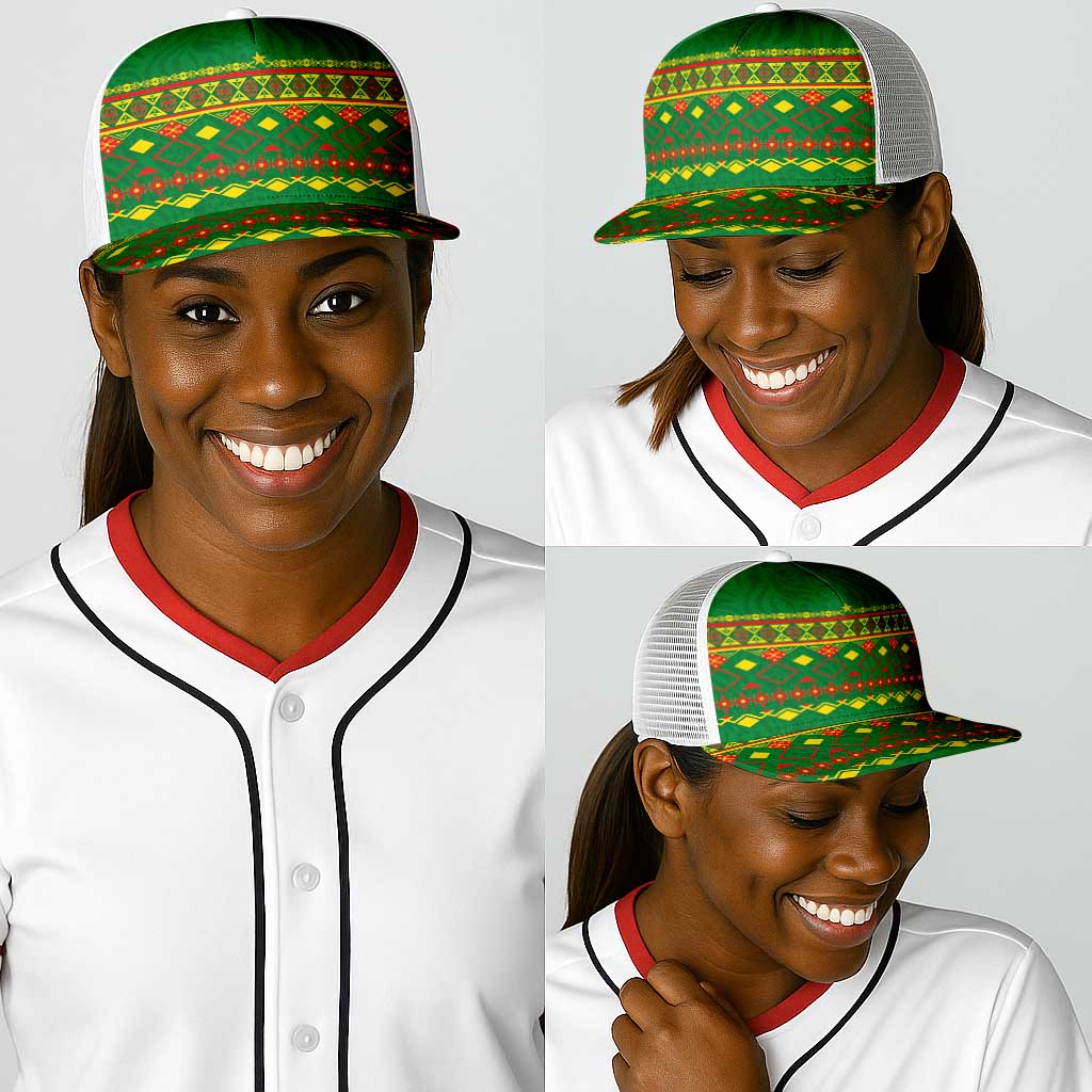 Cameroon Football Baseball Net Cap Tribal Motifs Green Color