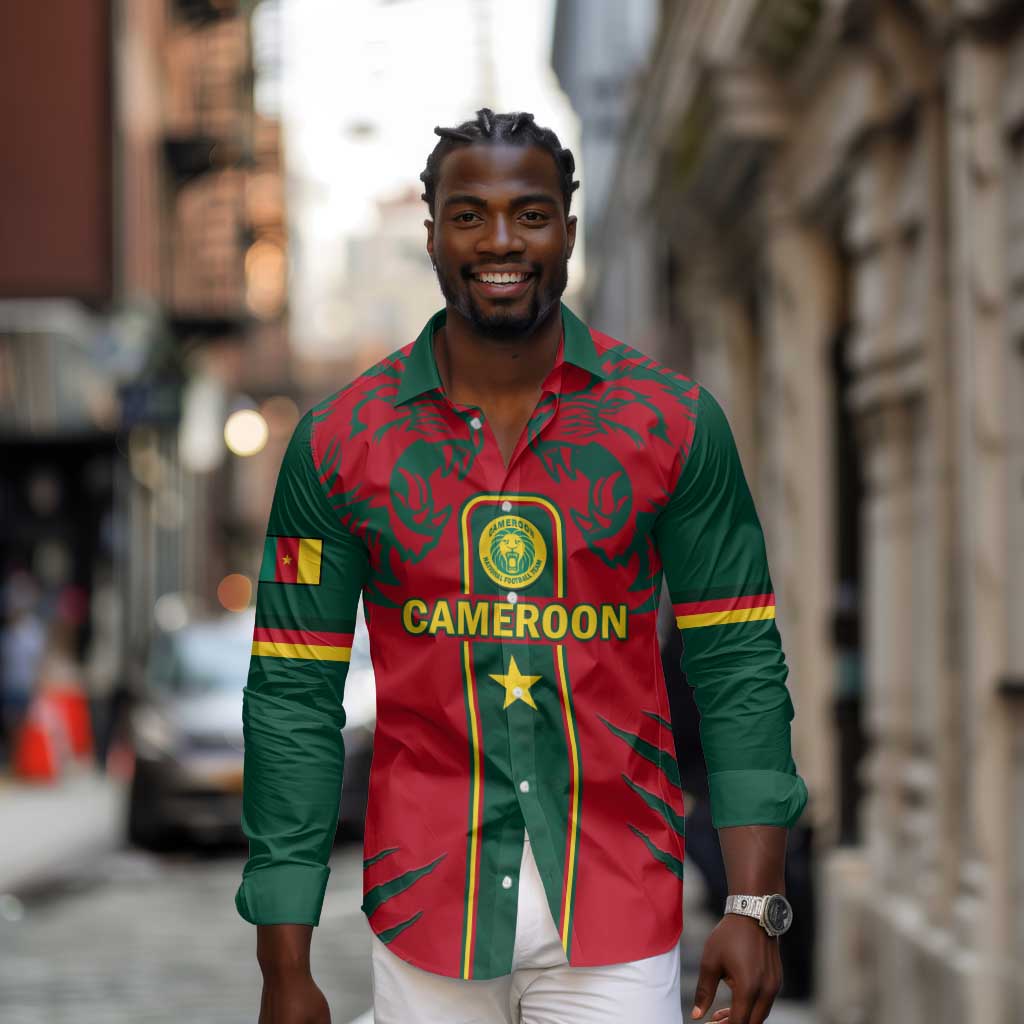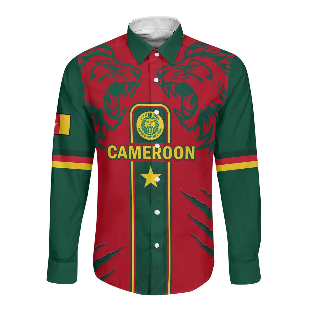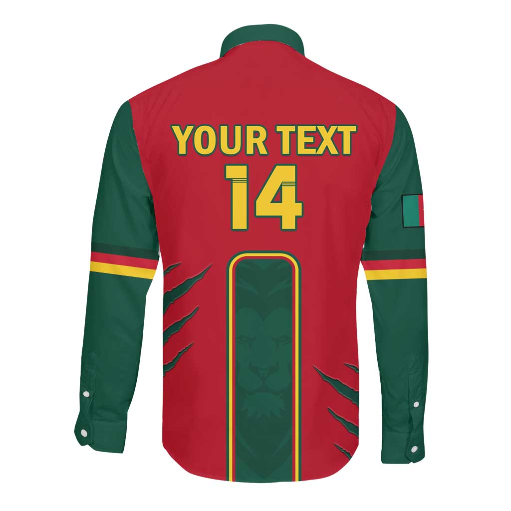 Custom Cameroon Football Long Sleeve Button Shirt 2024 African Nations Go Champions Lion Style