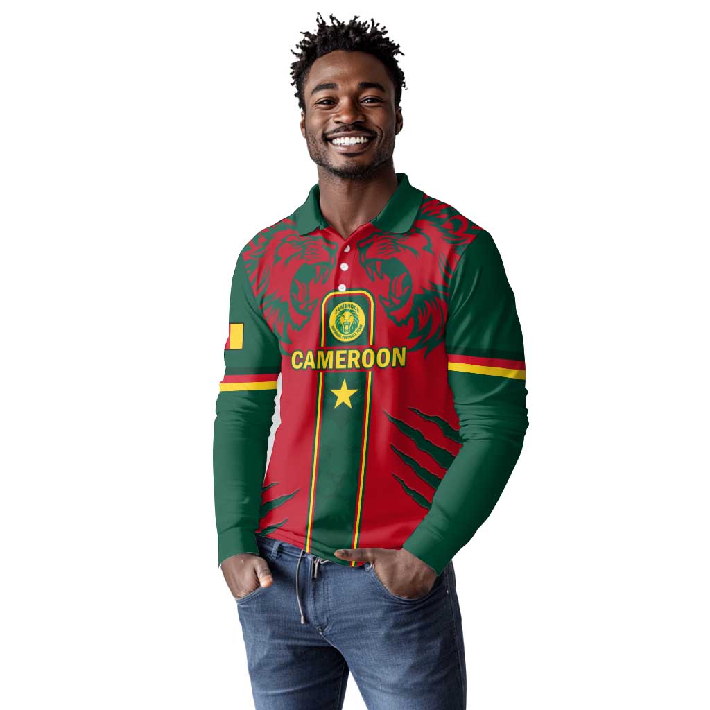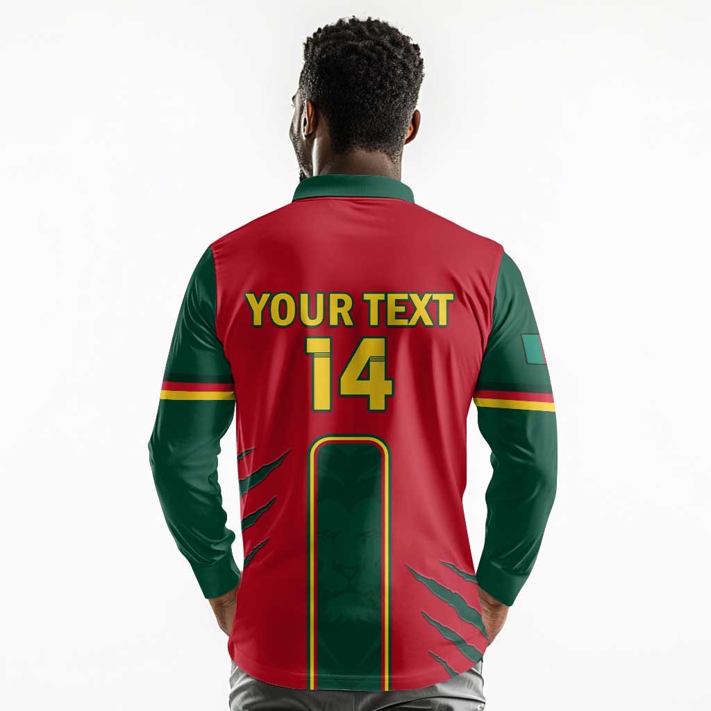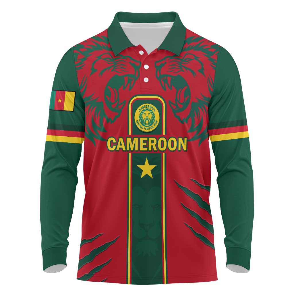 Custom Cameroon Football Long Sleeve Polo Shirt 2024 African Nations Go Champions Lion Style LT14