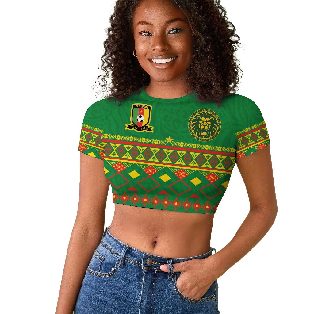 Custom Cameroon Football Raglan Cropped T shirt Tribal Motifs Green Color