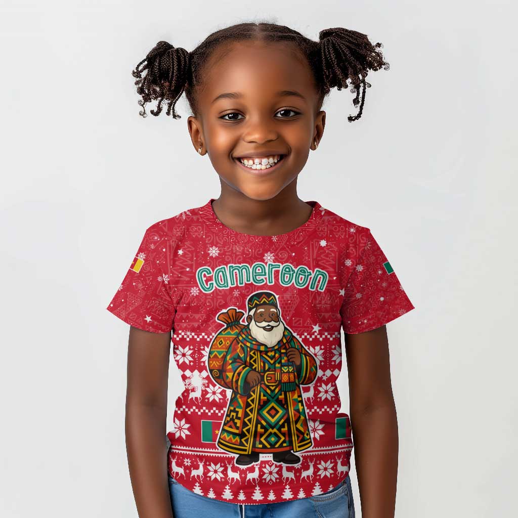 Cameroon Christmas Kid T shirt Snowflake Pattern Traditional Santa and Map Motif