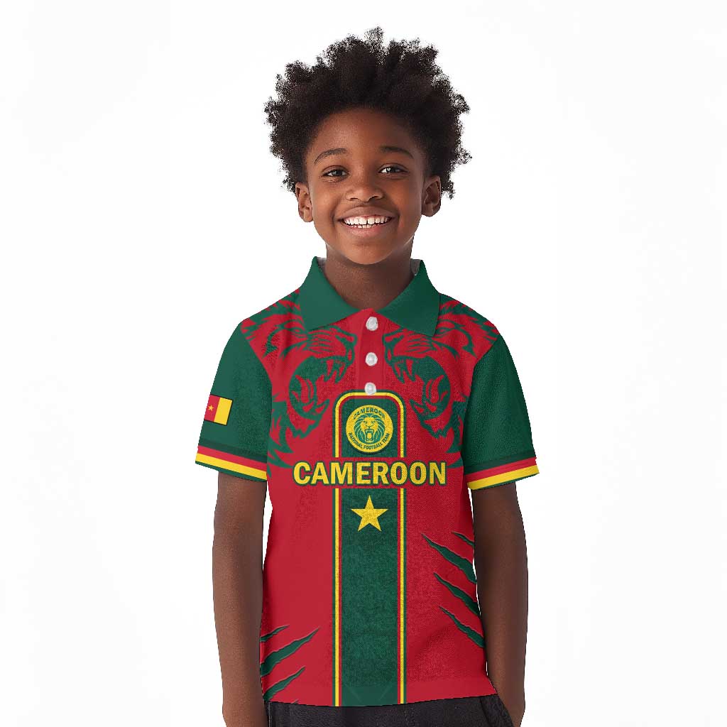 Custom Cameroon Football Kid Polo Shirt 2024 African Nations Go Champions Lion Style