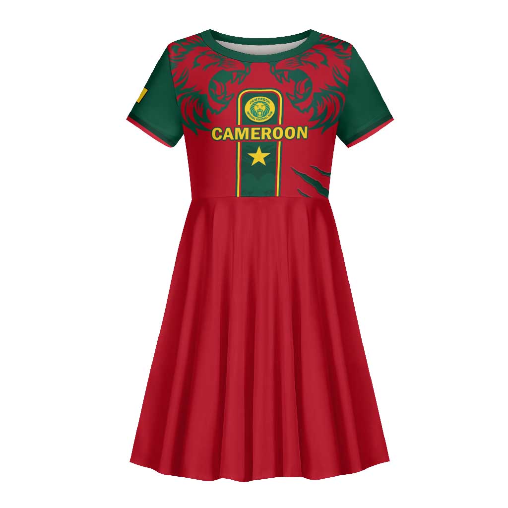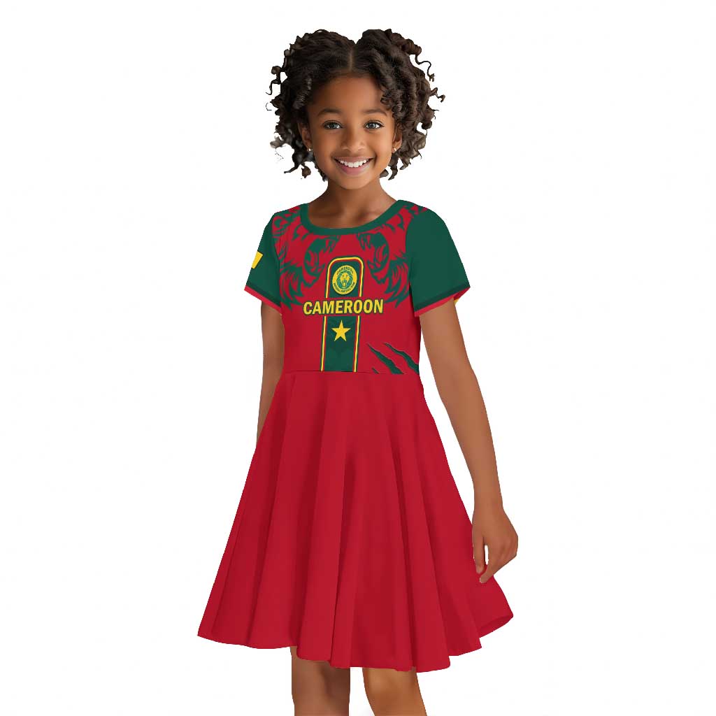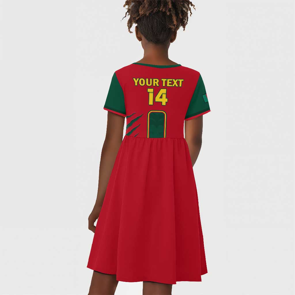 Custom Cameroon Football Kid Short Sleeve Dress 2024 African Nations Go Champions Lion Style