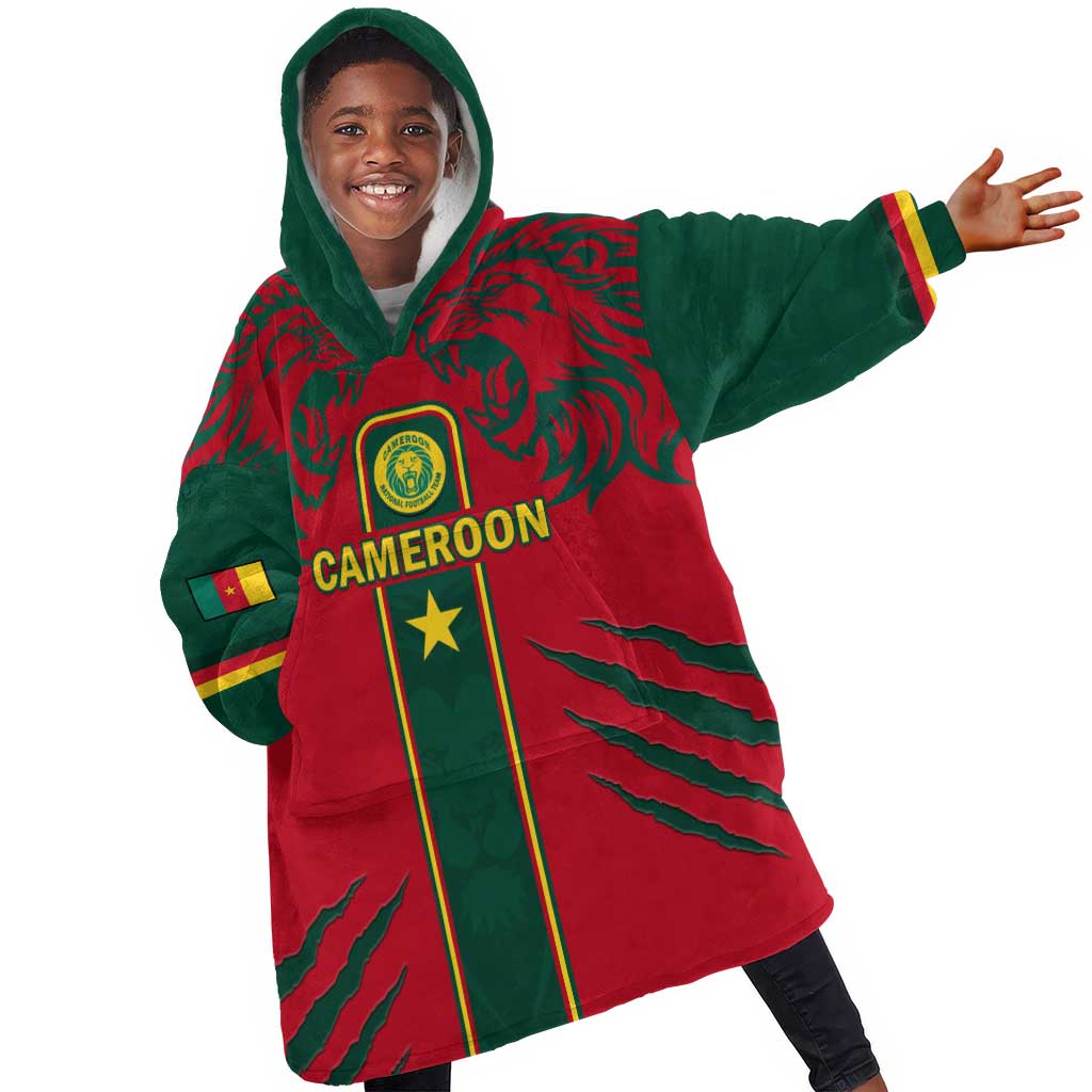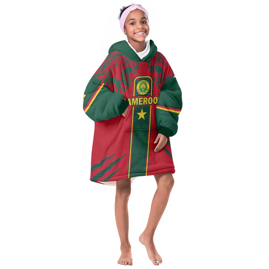 Custom Cameroon Football Kid Wearable Blanket Hoodie 2024 African Nations Go Champions Lion Style LT14