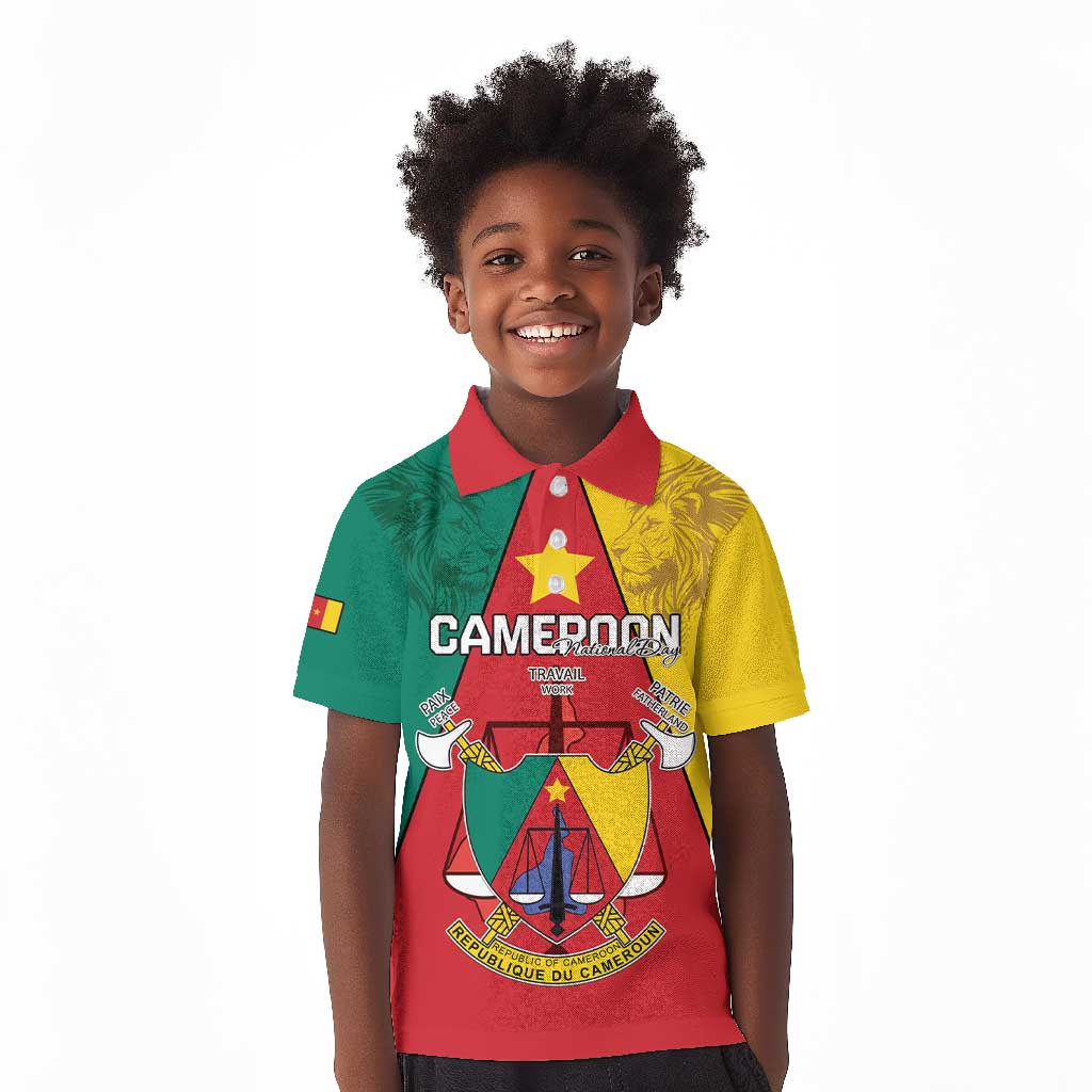 Personalised Cameroon National Day Kid Polo Shirt Lion Mix Coat Of Arms Style