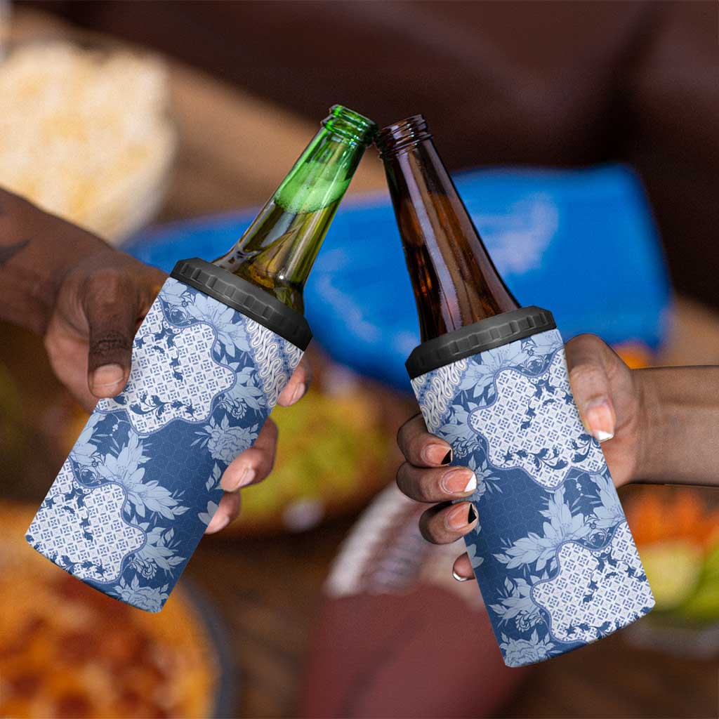 Indonesia Javanese Batik Nelson Mandela Madiba Blue 4 in 1 Can Cooler Tumbler