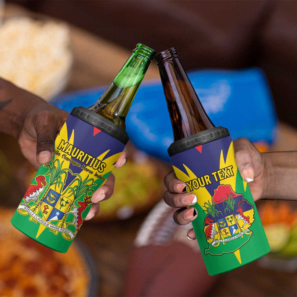 Personalised Republique de Maurice 4 in 1 Can Cooler Tumbler Coat Of Arms Flag Style