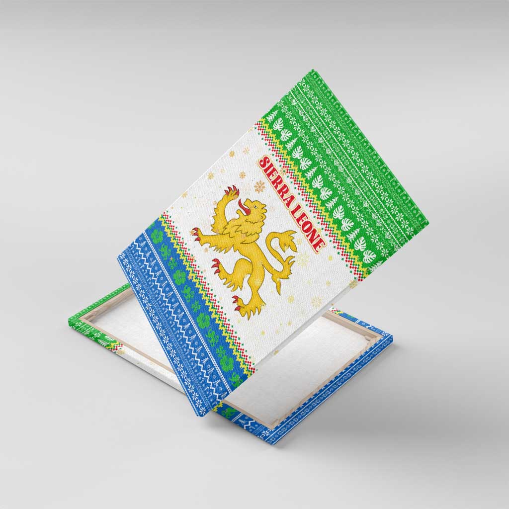Sierra Leone Christmas Canvas Wall Art Festive Pattern Golden Lion Emblem and Santa Sleigh