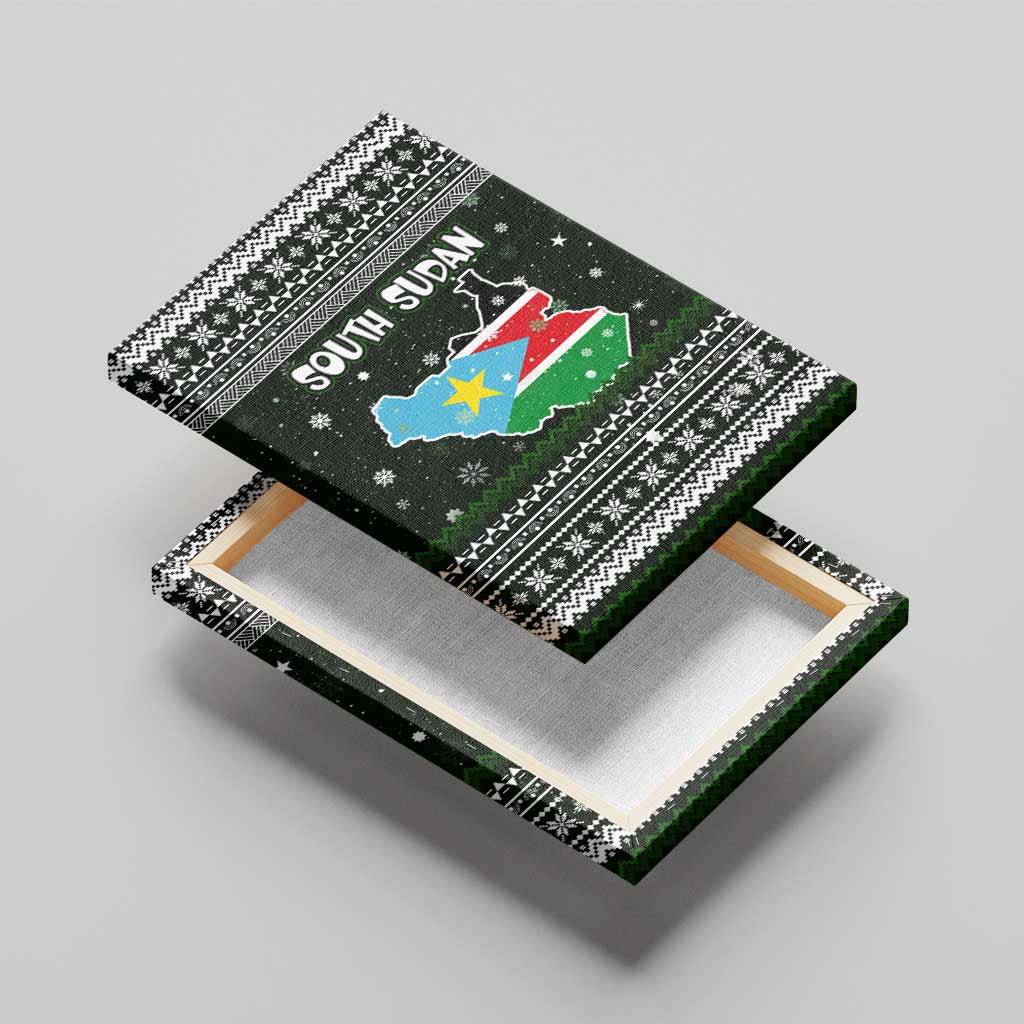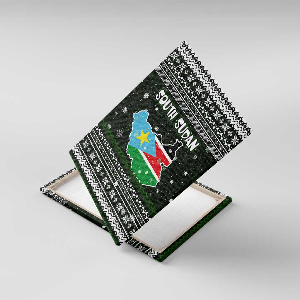 South Sudan Christmas Canvas Wall Art National Map Flag Colors and Sleeping Rhino Motif