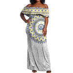 Cape Verde African Tribal Pattern Off Shoulder Maxi Dress Chest Arm Tattoo