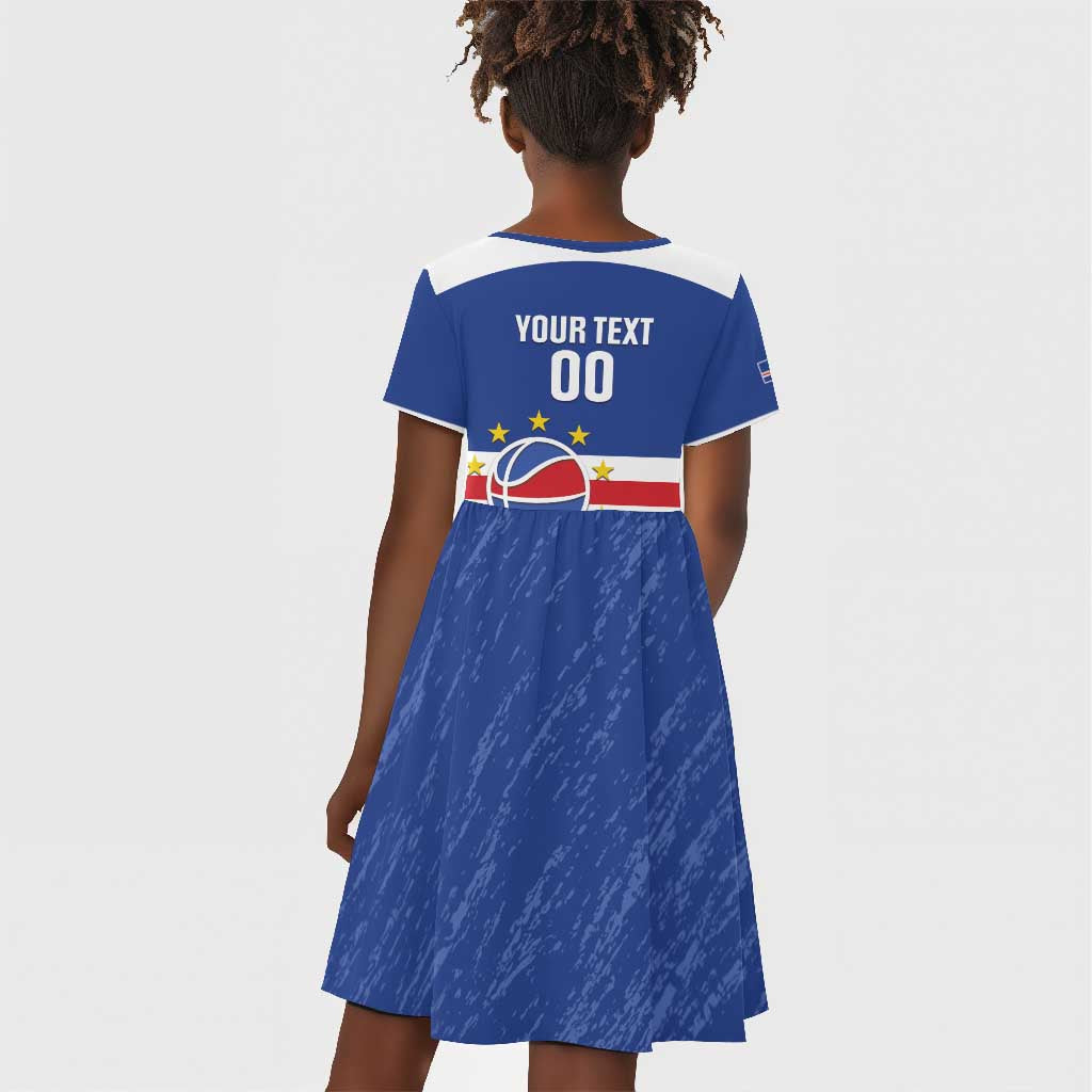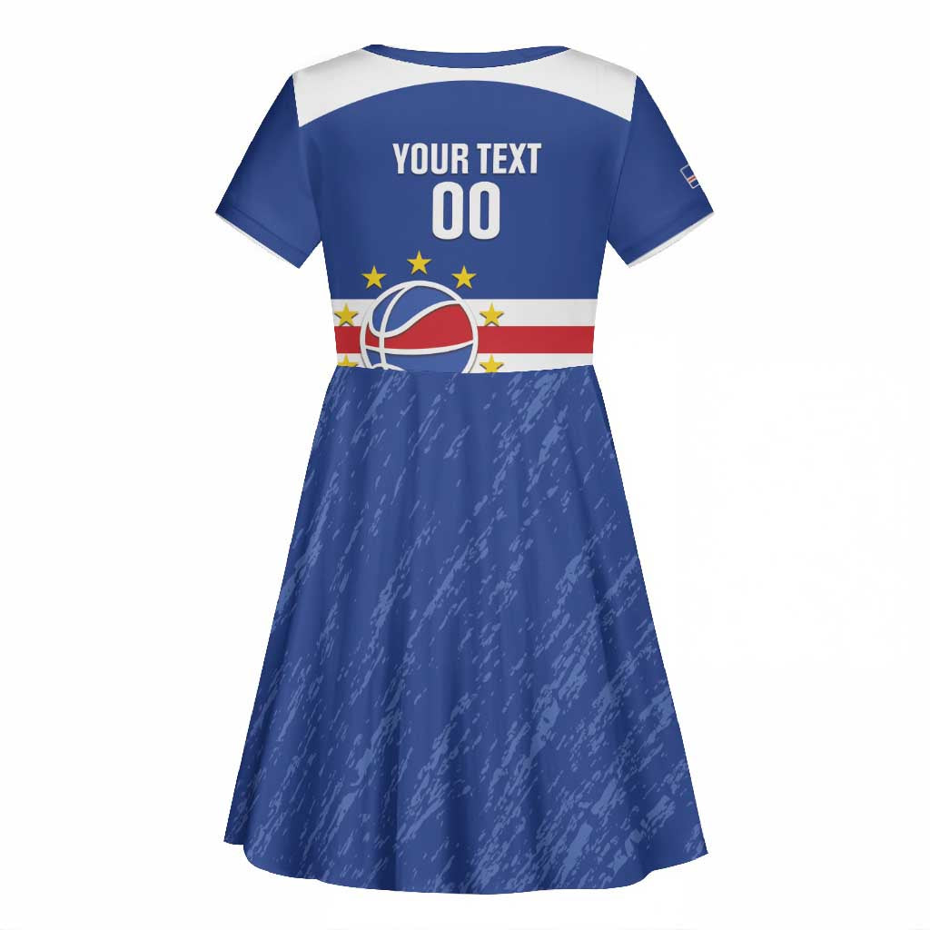 Afro Basketball Custom Cape Verde Kid Short Sleeve Dress Come On Blue Sharks