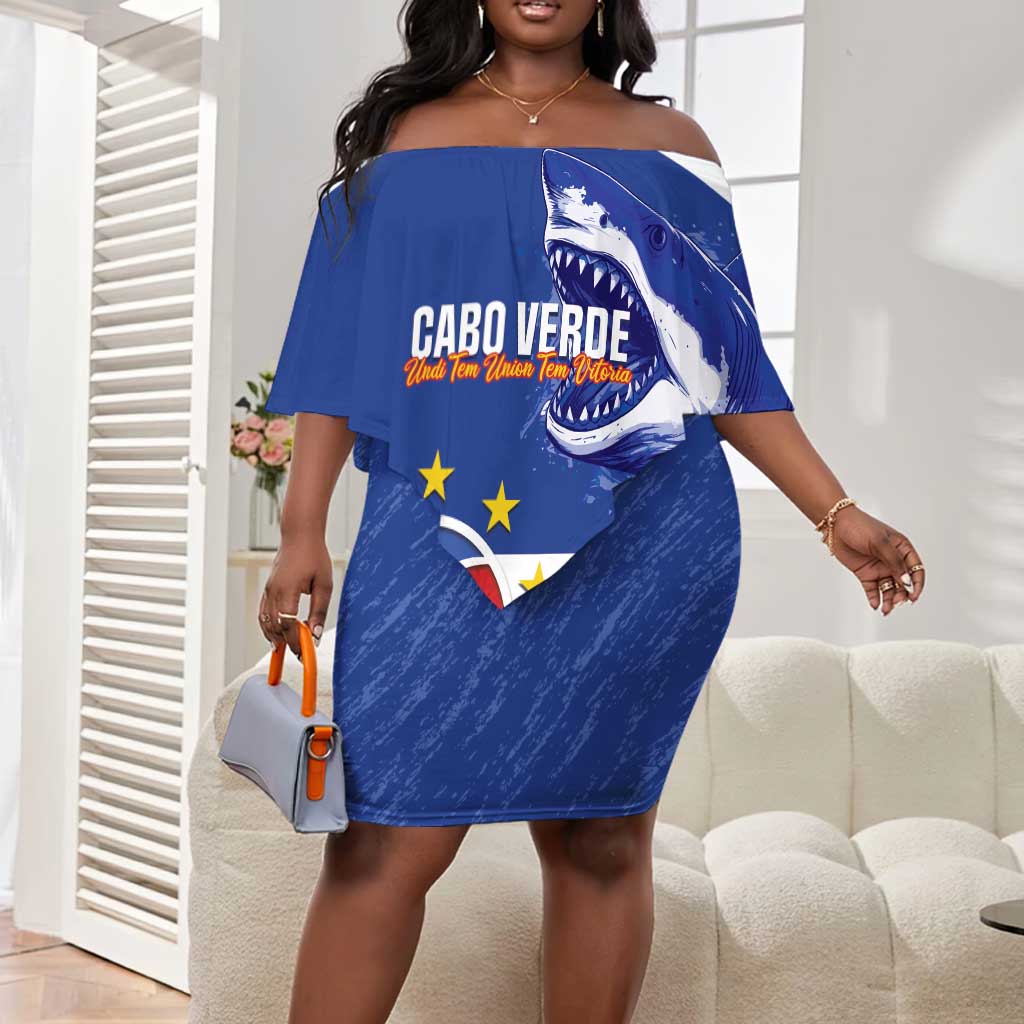 Afro Basketball Custom Cape Verde Off Shoulder Short Dress Come On Blue Sharks