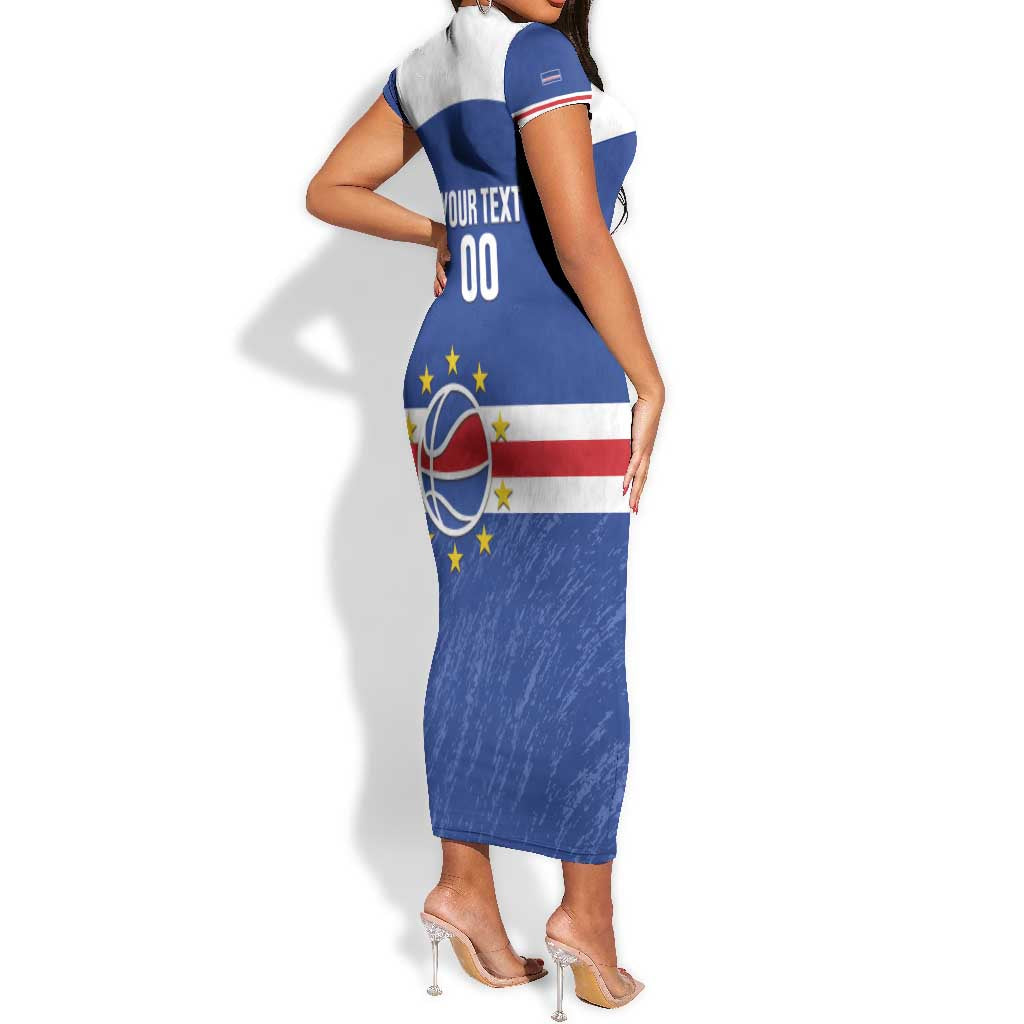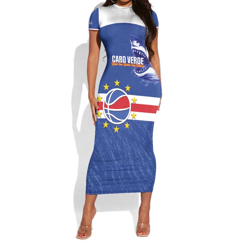 Afro Basketball Custom Cape Verde Short Sleeve Bodycon Dress Come On Blue Sharks