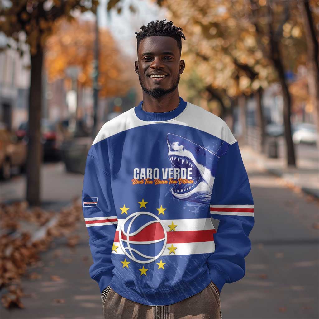 Afro Basketball Custom Cape Verde Sweatshirt Come On Blue Sharks