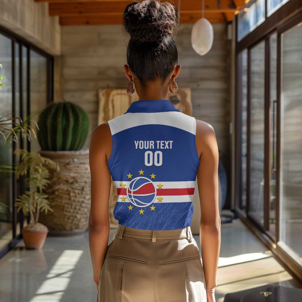 Afro Basketball Custom Cape Verde Women Sleeveless Polo Shirt Come On Blue Sharks