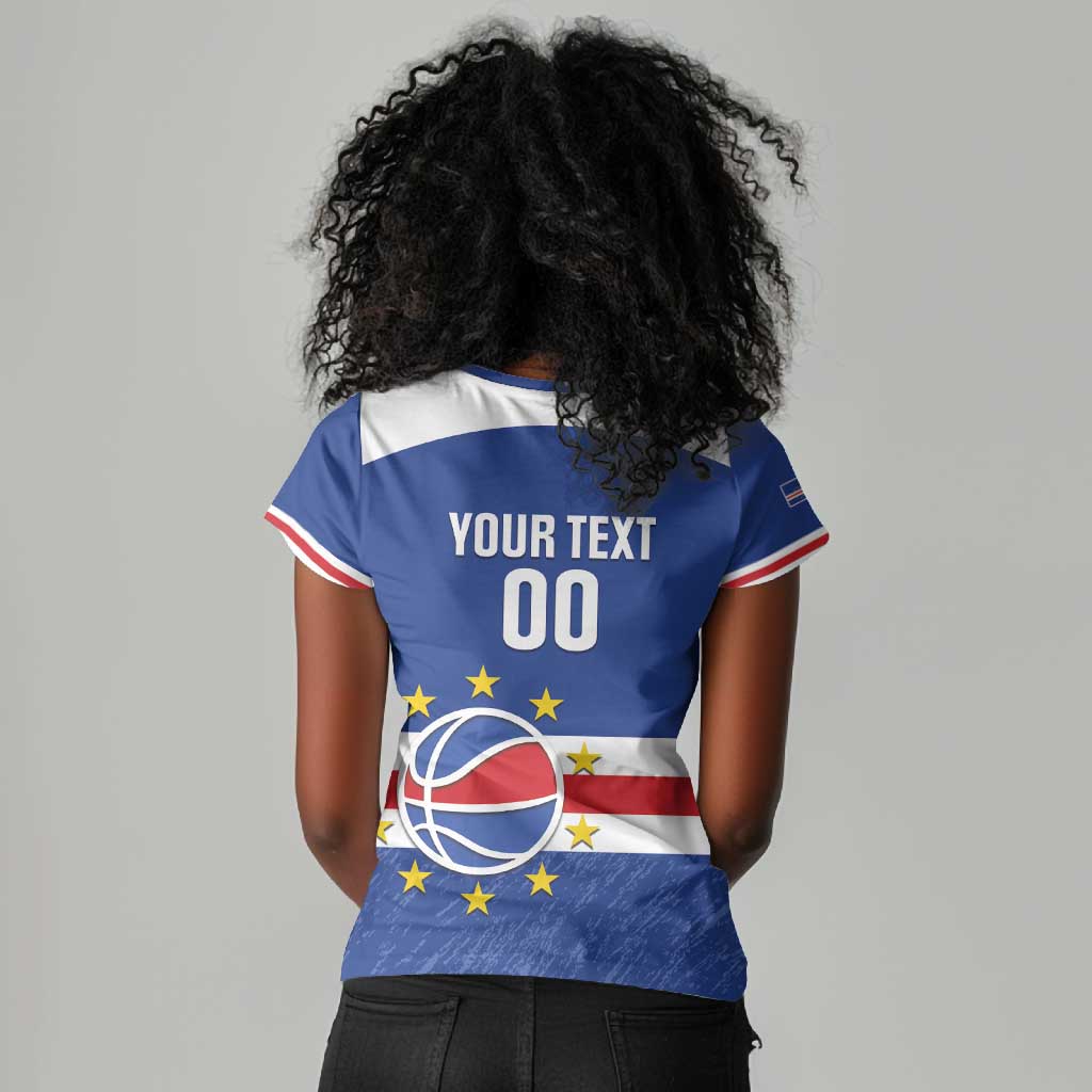 Afro Basketball Custom Cape Verde Women V-Neck T-Shirt Come On Blue Sharks