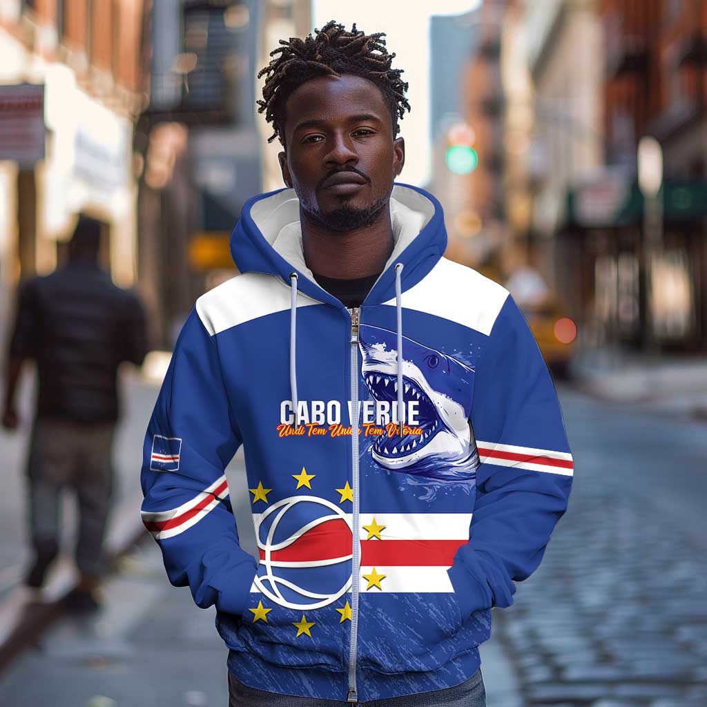 Afro Basketball Custom Cape Verde Zip Hoodie Come On Blue Sharks