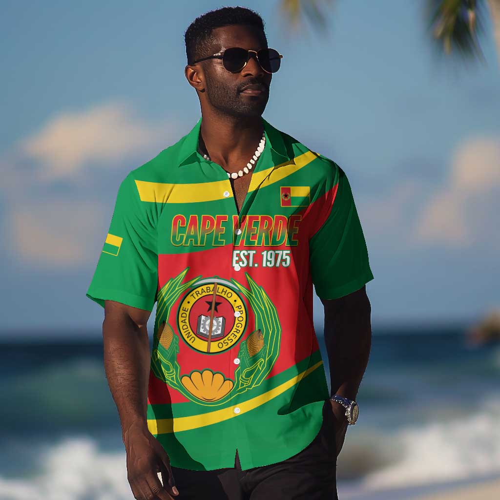 Cape Verde 1975-1992 Hawaiian Shirt Unidade Trabalho Progresso