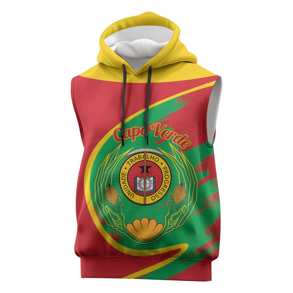 Cape Verde 1975-1992 Sleeveless Zip Hoodie Coat Of Arms Grunge Style