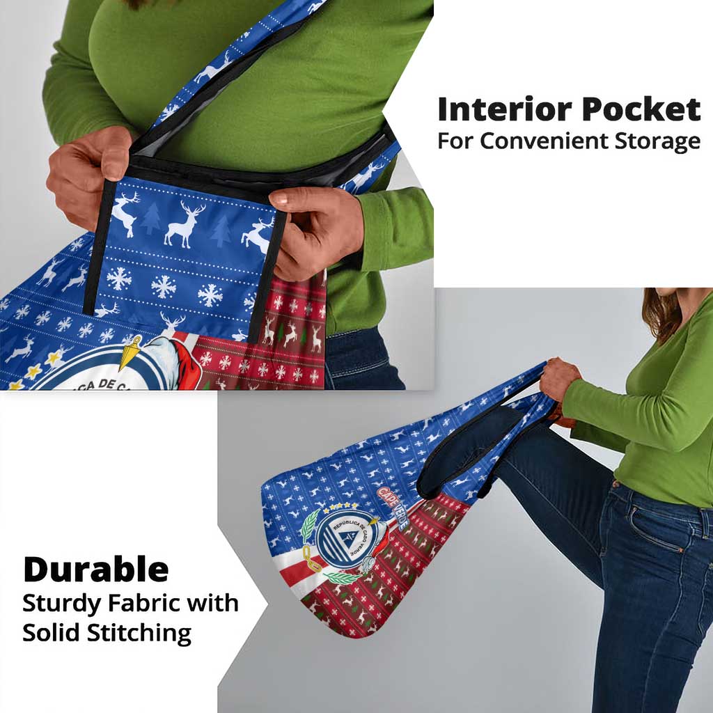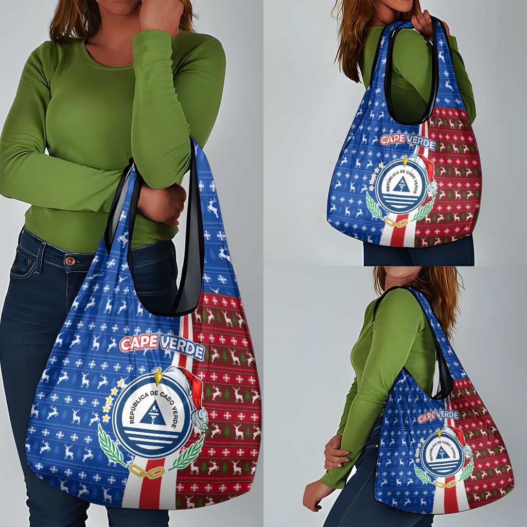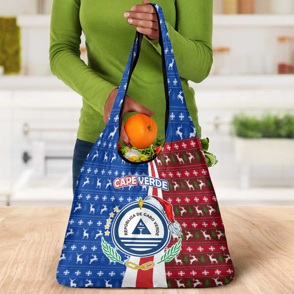Cape Verde Christmas Grocery Bag Festive Pattern Christmas Tree and National Emblem Motif