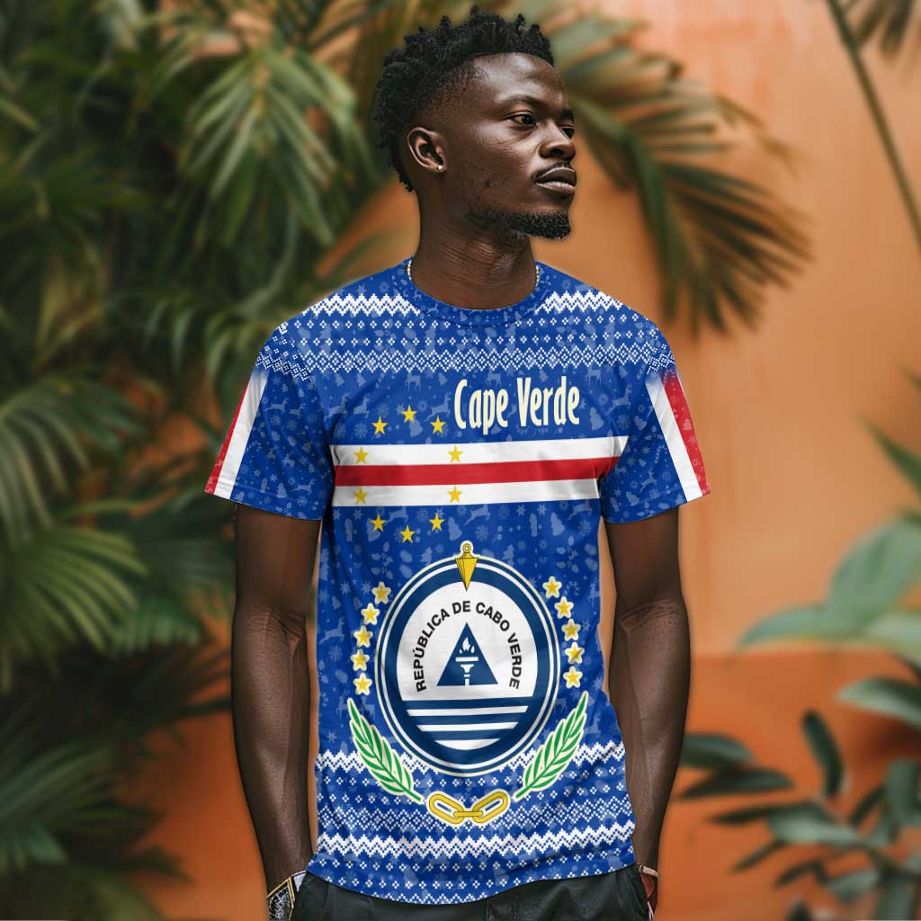 Cape Verde Christmas T shirt Blue Festive Pattern Sailing Santa and National Emblem Motif