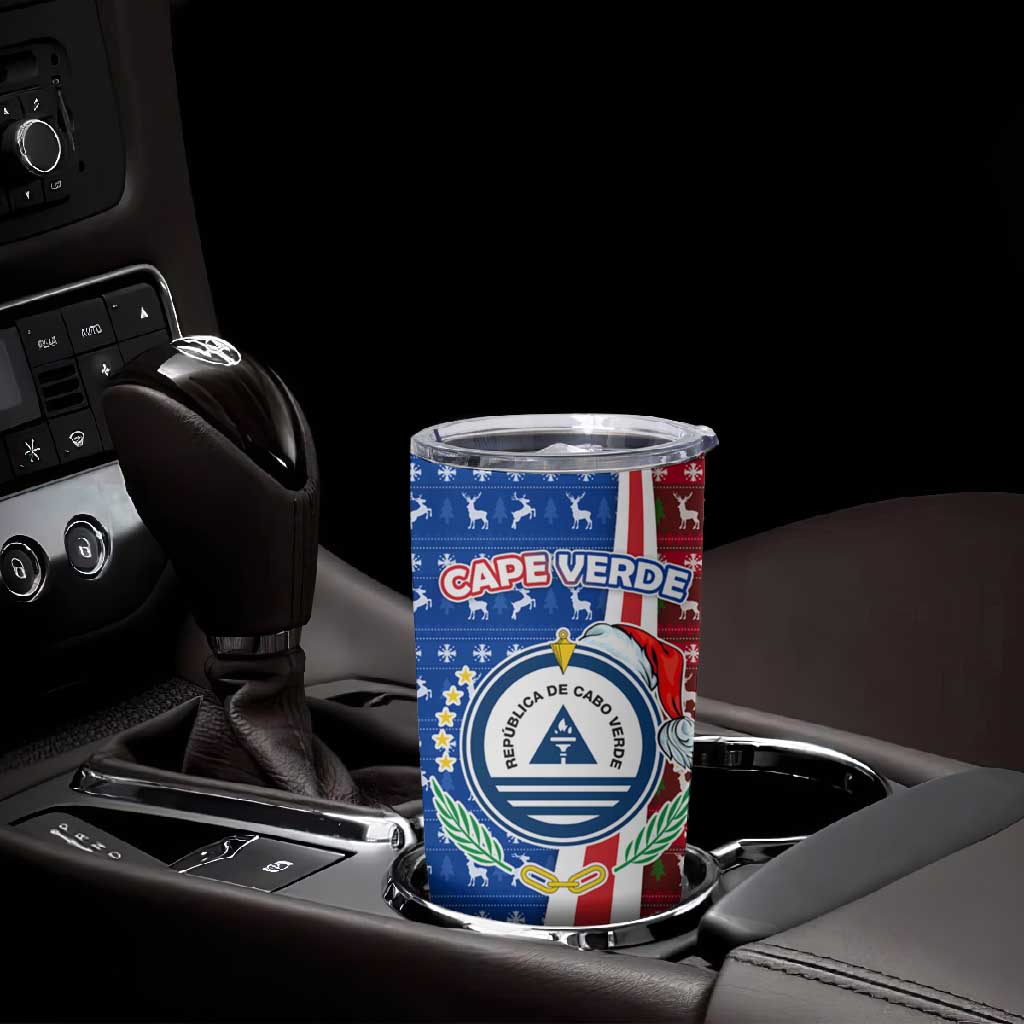 Cape Verde Christmas Tumbler Cup Festive Pattern Christmas Tree and National Emblem Motif